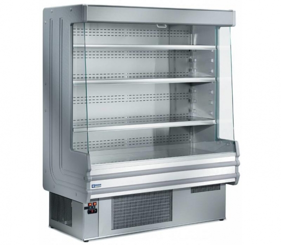 - 3 tablettes (280 mm) d'exposition (Inox) réglables. Munie de moulures "porte-prix".