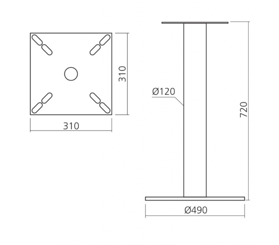 Base Ø490 mm Hauteur: 72cm Diamètre du tube (mm) : 120. Matériau : acier
