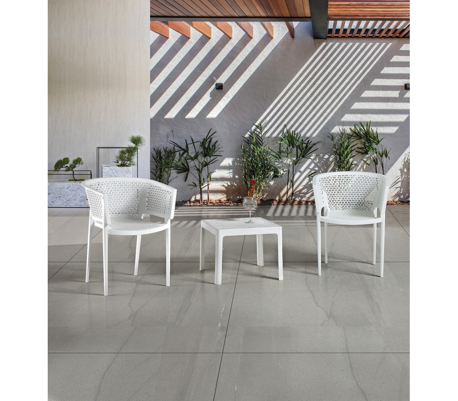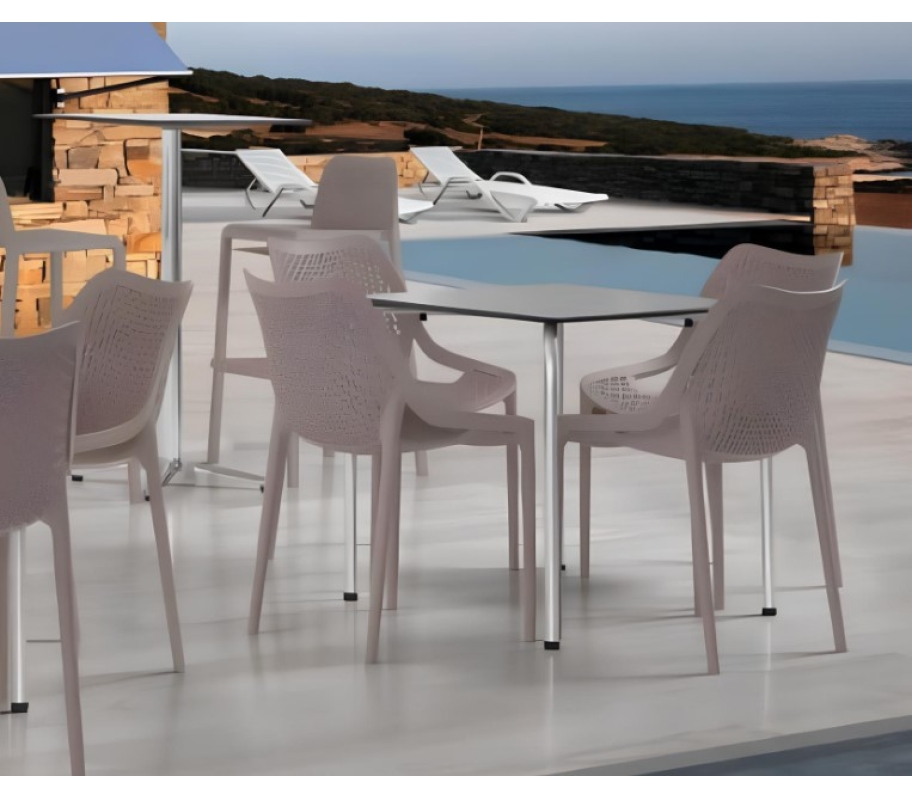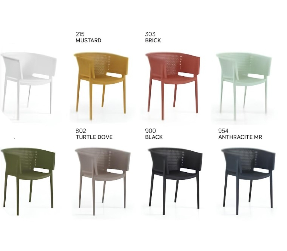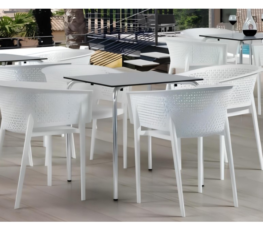Intérieur et extérieur Matériaux : polypropylène renforcé fibre de verre Piétement injection au gaz 100% recyclable Empilable Anti-UV