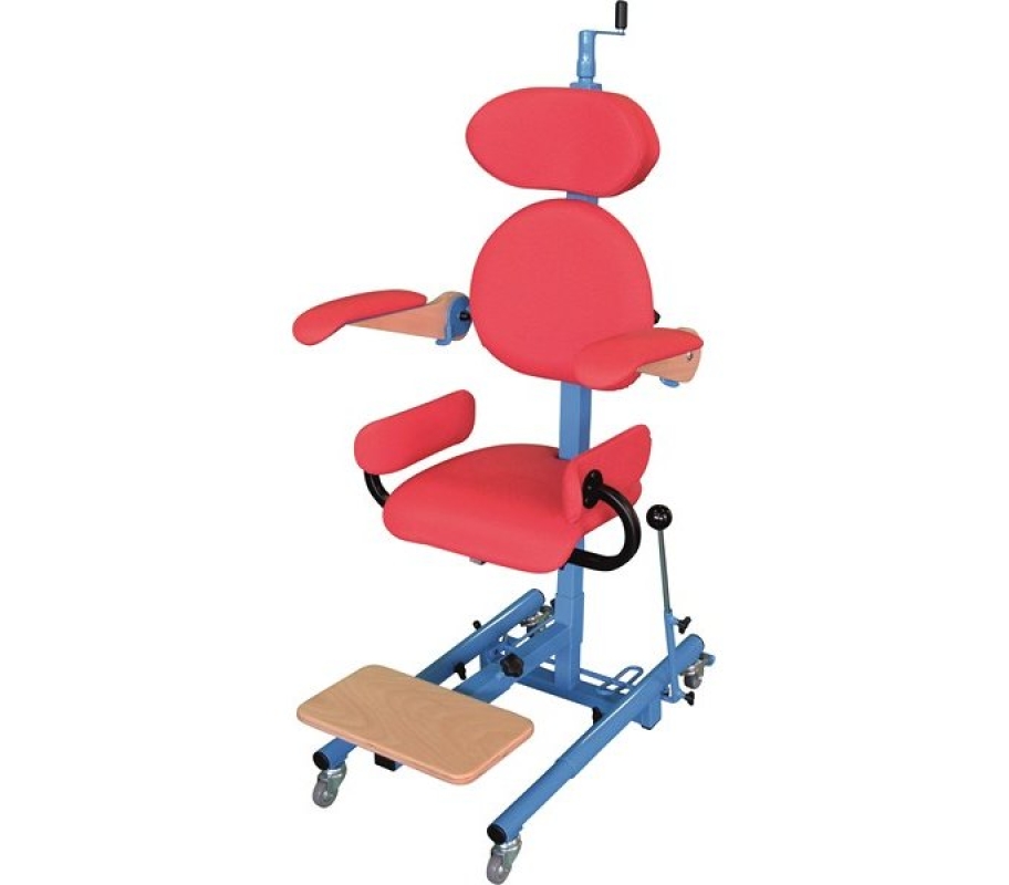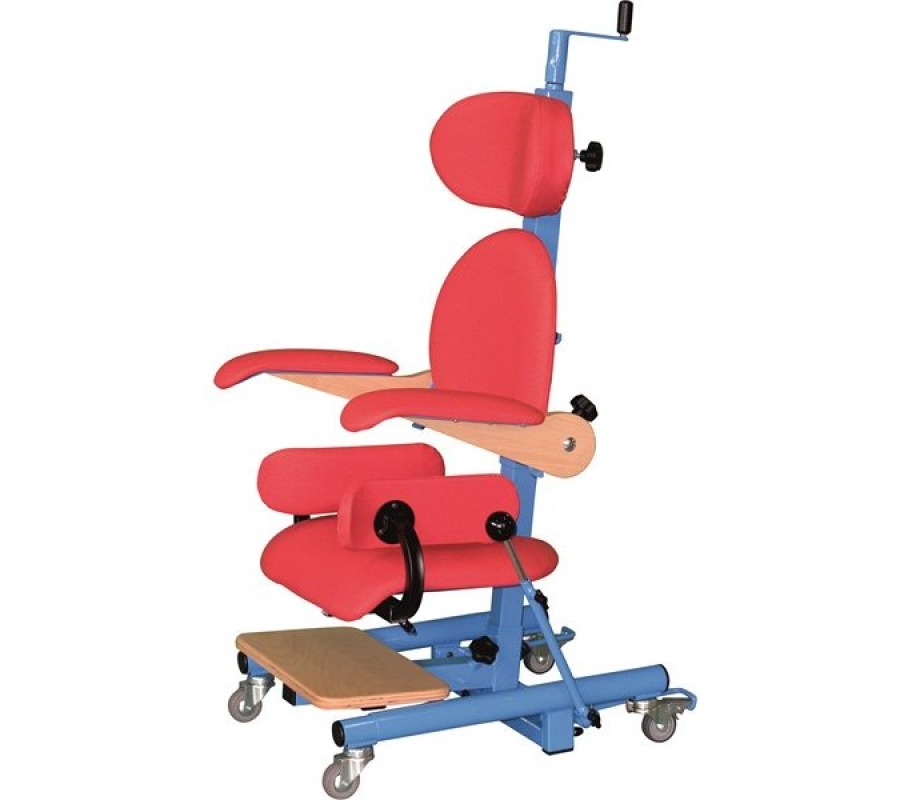 - Hauteur : Réglable de 300 à 500 mm (du sol au-dessus de l’assise) par manivelle amovible.