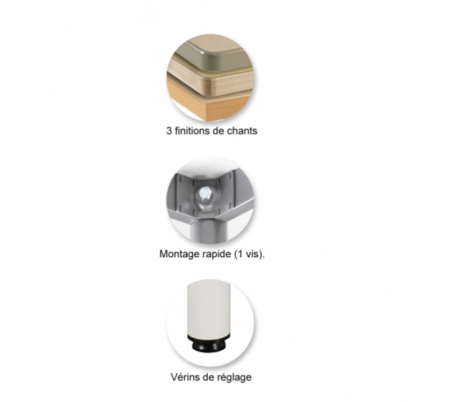 - Matériau : Stratifié avec chant en polypropylène (PP) de 2 mm.