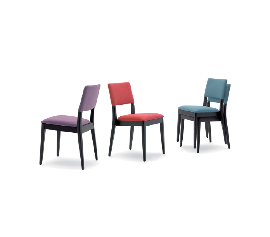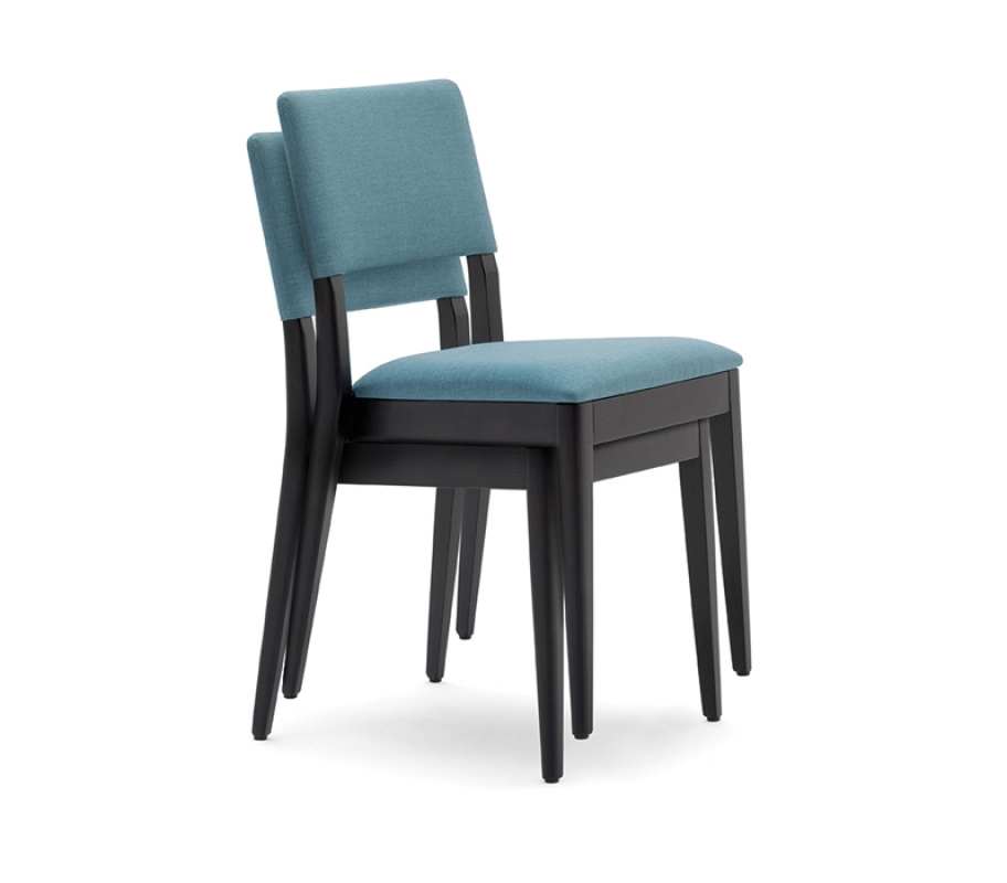 - Modèle : MOON LIGHT STK, une chaise empilable au design épuré, fabriquée en bois de hêtre.