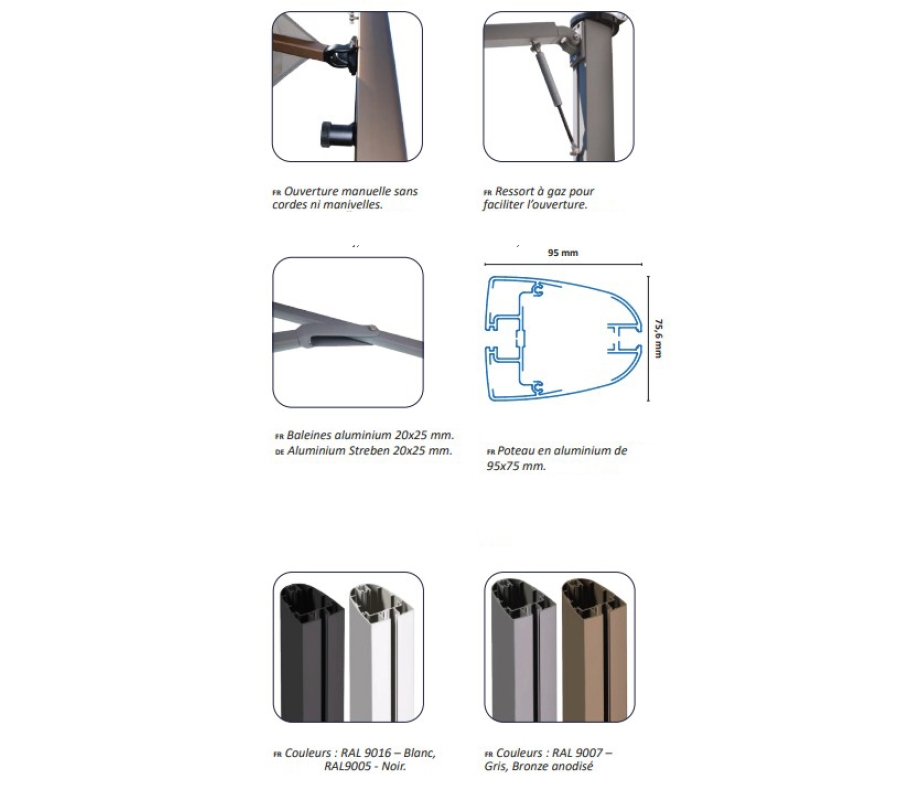 - Option : Volant (pour une protection supplémentaire contre le soleil et la pluie)