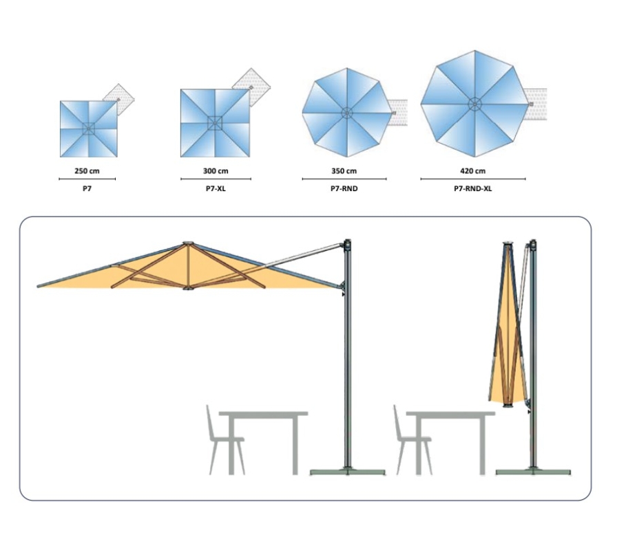 - P7-RND : 275 cm x 210 cm x 56 cm