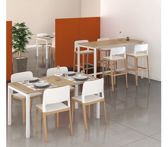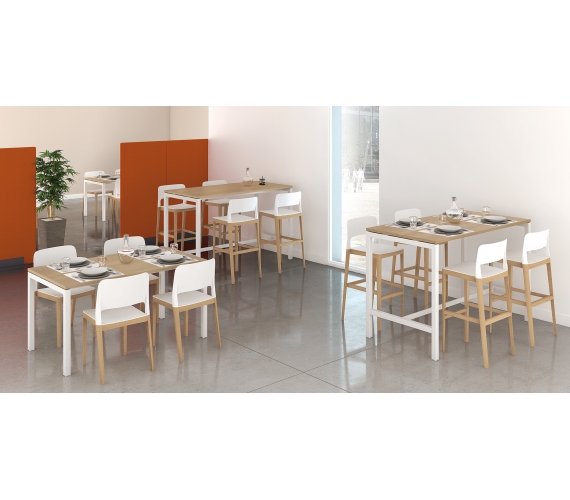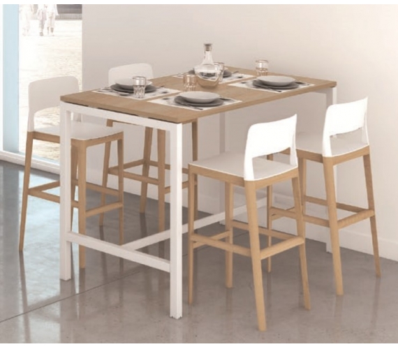 Un grand classique, la table rectangulaire s’adapte à tous les espaces. En version haute pour plus